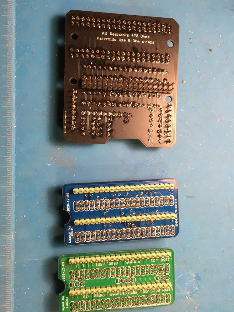 Five of the control boards (I forgot to hit the “send 10” checkbox) and 10 each of the 6502 and 8080 “pods”. The next step (after soldering that pins in place) was to wait for the KeyShield on the slow boat from Asia. Somewhat impatient person that I can be, I opted to re-write part of the ICT code to support a simple GPIO keypad interface. You can find the code HERE, along with some additional eye candy on the boot screen (and a keypad self-test routine as well).